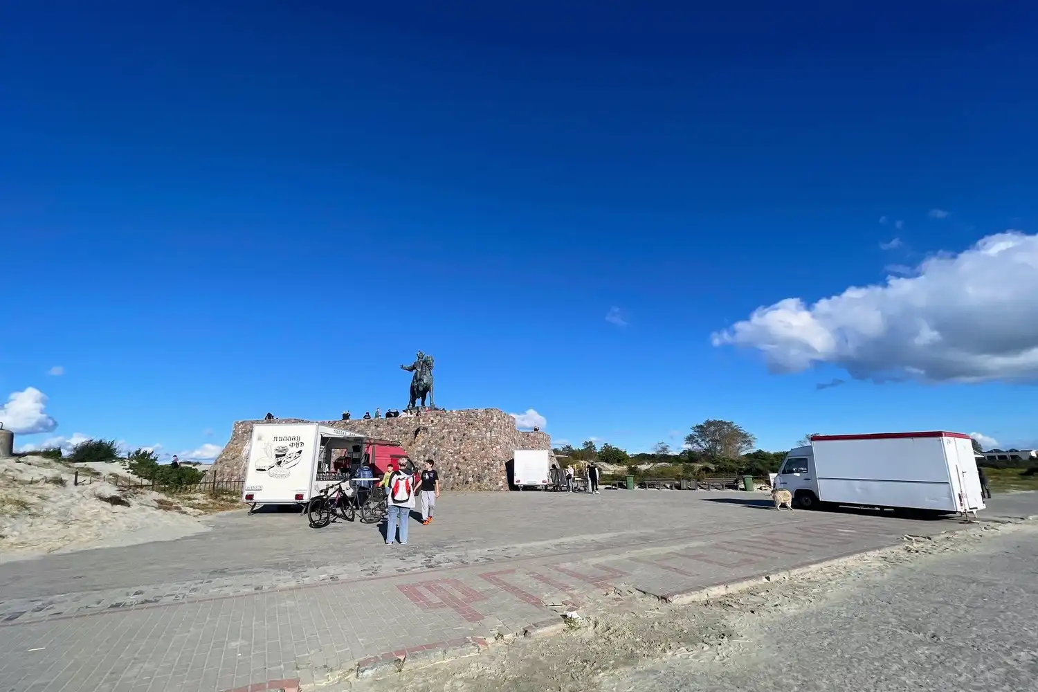 На территории рядом с памятником развернута торговля сувенирами, а также работают несколько точек со стритфудом, где можно перекусить.